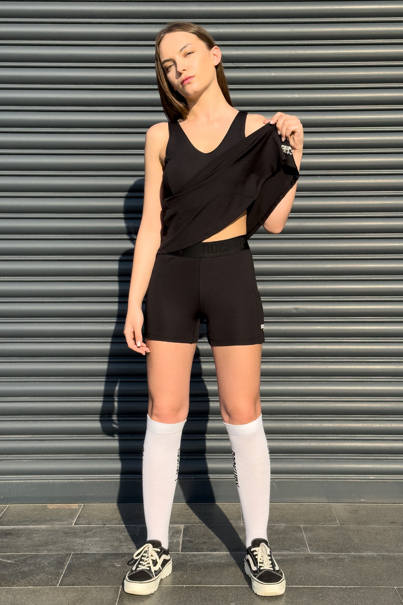 Yumuşak tuşeli, sol dış bacak kısmında spor ekipmanı koymaya uygun fonksiyonlu cebe ve özel marka yazılı bel lastiğine sahip kısa, spor kadın şort. Cebin üzerinde marka ismi ve koleksiyon ile iş birliği yapılan influencer Fabia Bengs’in logosu yer almaktadır. “Faralda” elbise modeli ile birlikte giyinmeye uygundur. Golf, aktif spor ve yaşam tarzınıza her an entegre edilebilecek uygun bir giyimdir.