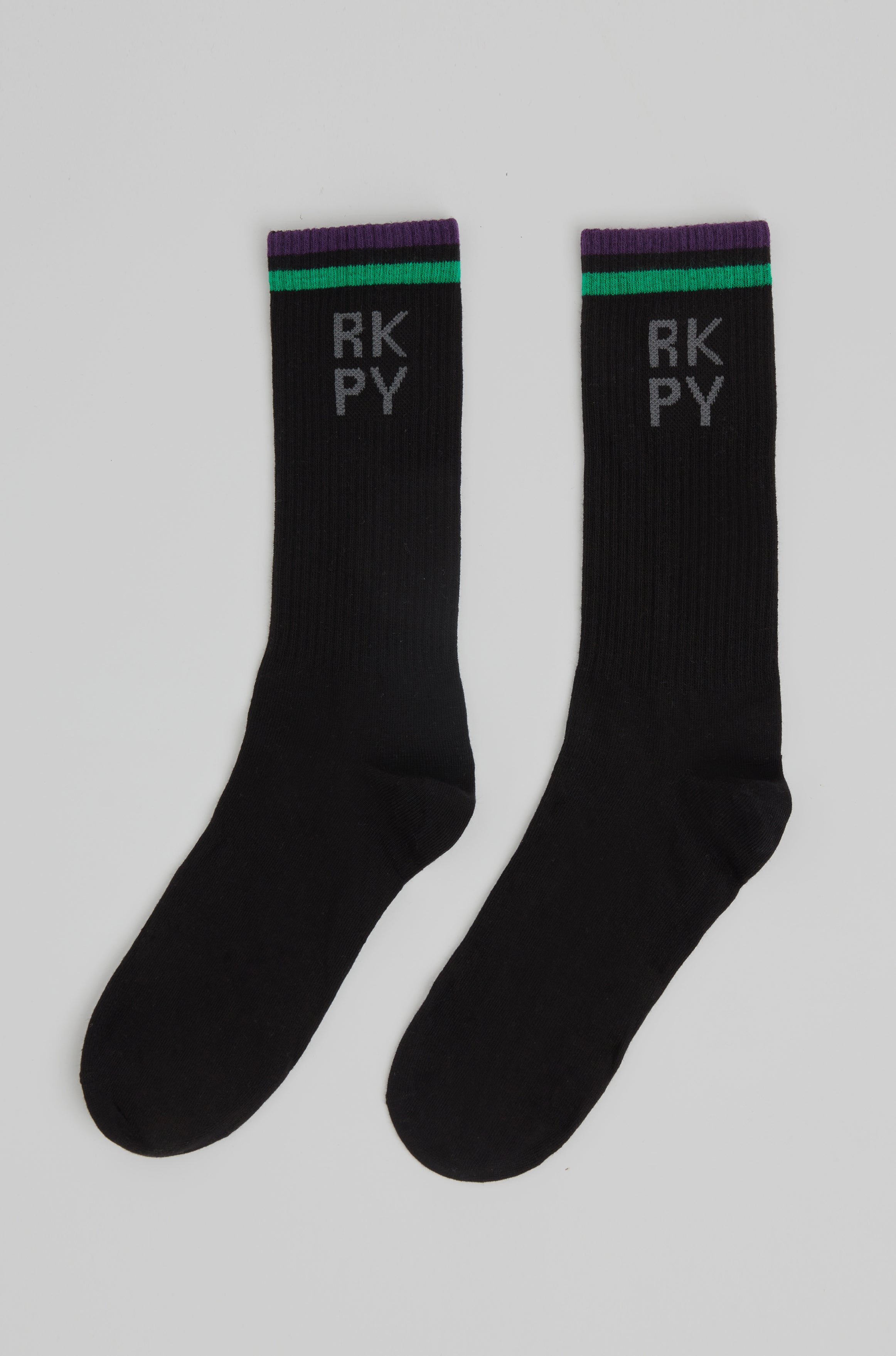 Ayaklarınıza rahatlık ve sportif bir görünüm kazandırmak için orijinal "RKPY" logolu siyah ve beyaz renk unisex pamuk-poliamid-ea karışık standard kesim çorapları.