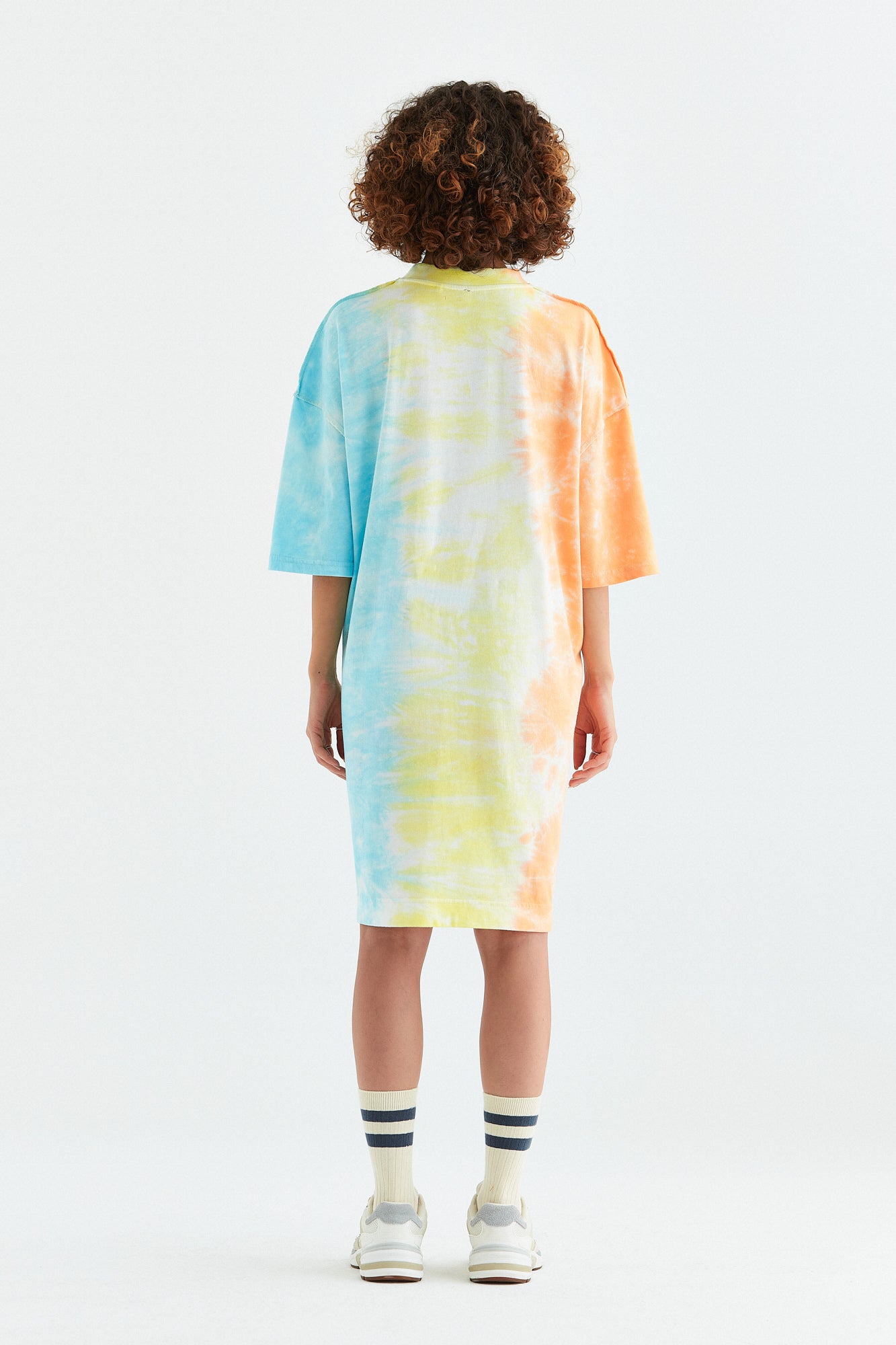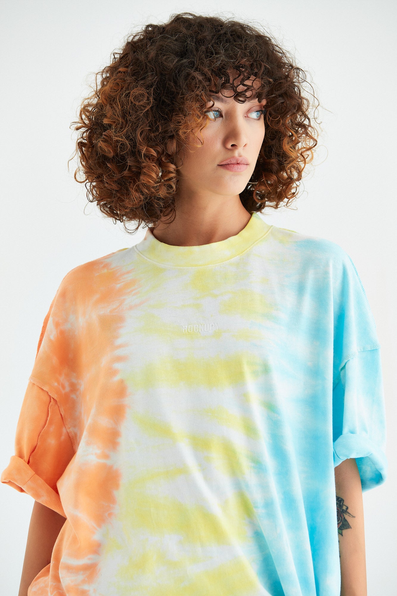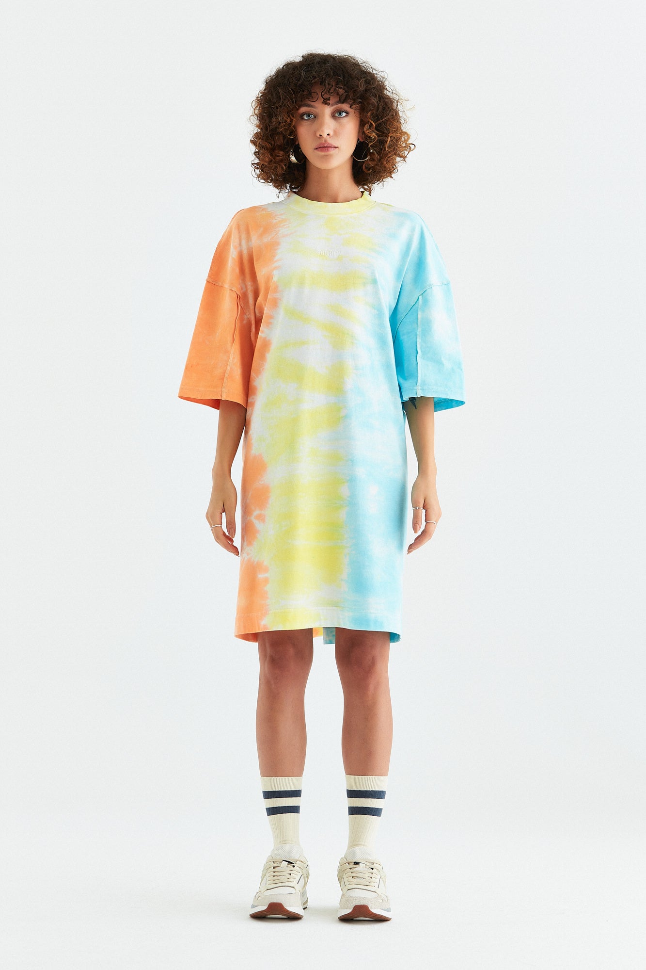 - Batik desenli, bisiklet yaka, göğüs hizasında orijinal “Rockupy” nakışlı yumuşak tuşeli kumaştan kadın tişört elbise. Giysilere parça boya ve özel yıkama tekniği uygulanmıştır. Kumaş pis dikiş tekniği ile dikilmiştir.