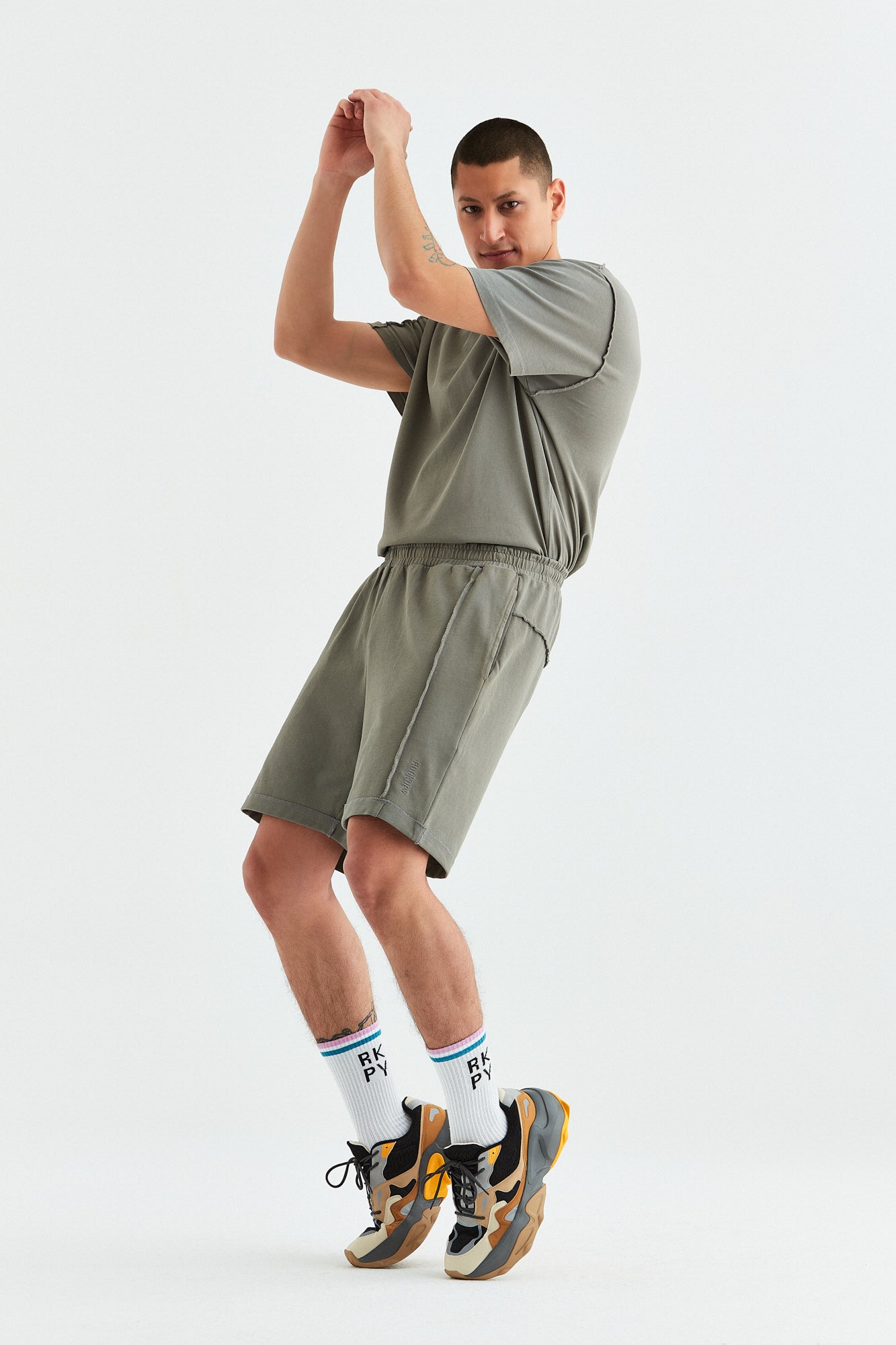 - Sol paça ucunda dikey şekilde konumlandırılmış orijinal ''Rockupy'' logolu ve bel kısmı lastikli büzme ipli, gri renkli, rahat ve şık %100 pamuklu erkek şort. Giysilere parça boya ve özel yıkama tekniği uygulanmıştır. Kumaş pis dikiş tekniği ile dikilmiştir.