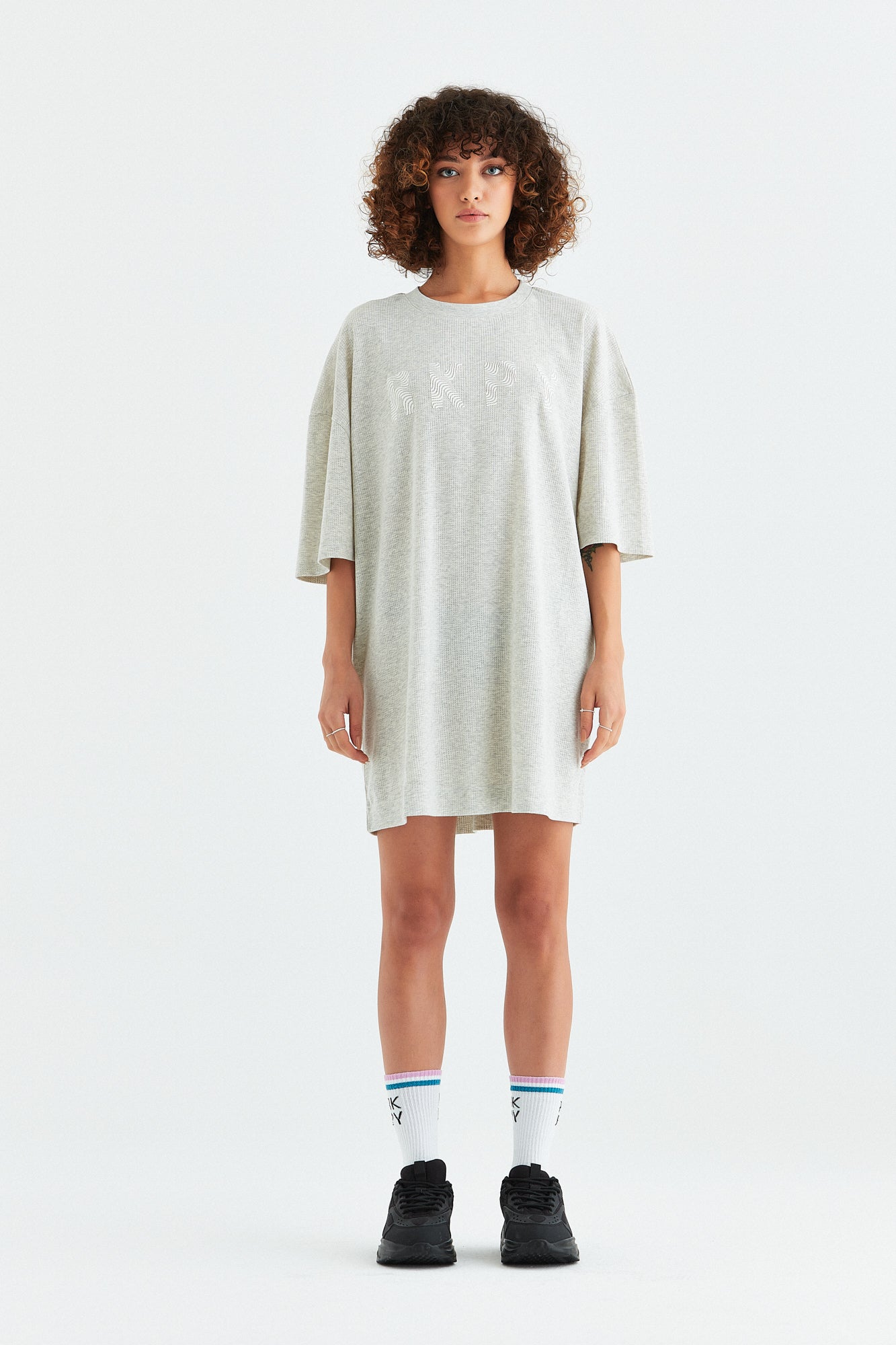 - Strüktürlü yumuşak tuşeli kumaştan kadın bisiklet yaka tişört elbise, yakası ribanalı, göğüs hizasında orijinal silikon logo ve sırt hizasında ise kauçuk baskıya sahiptir.