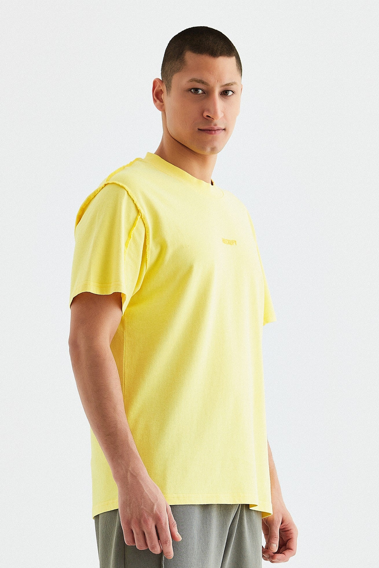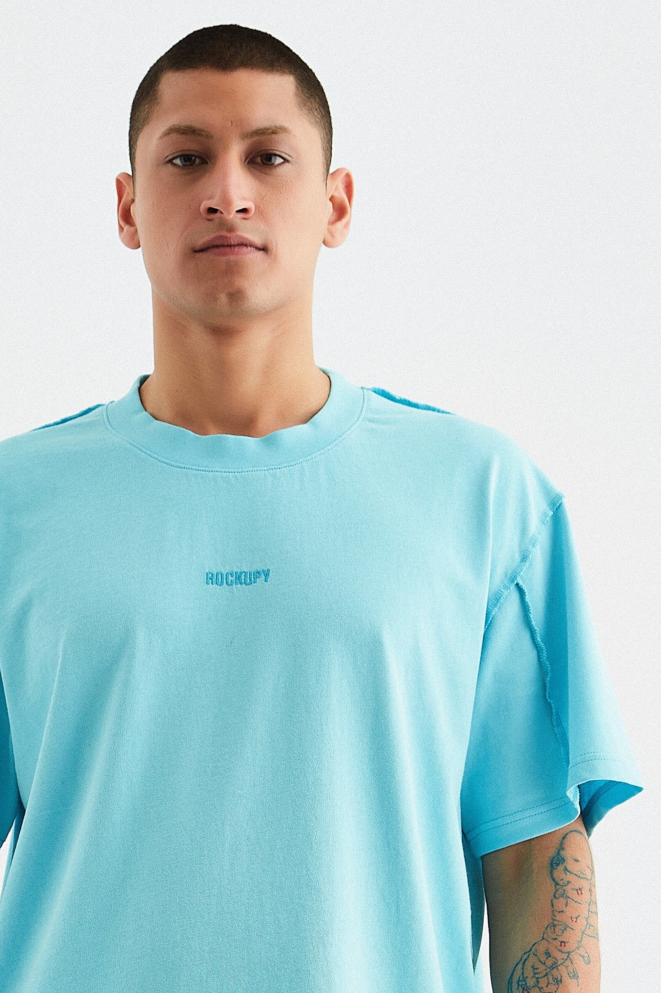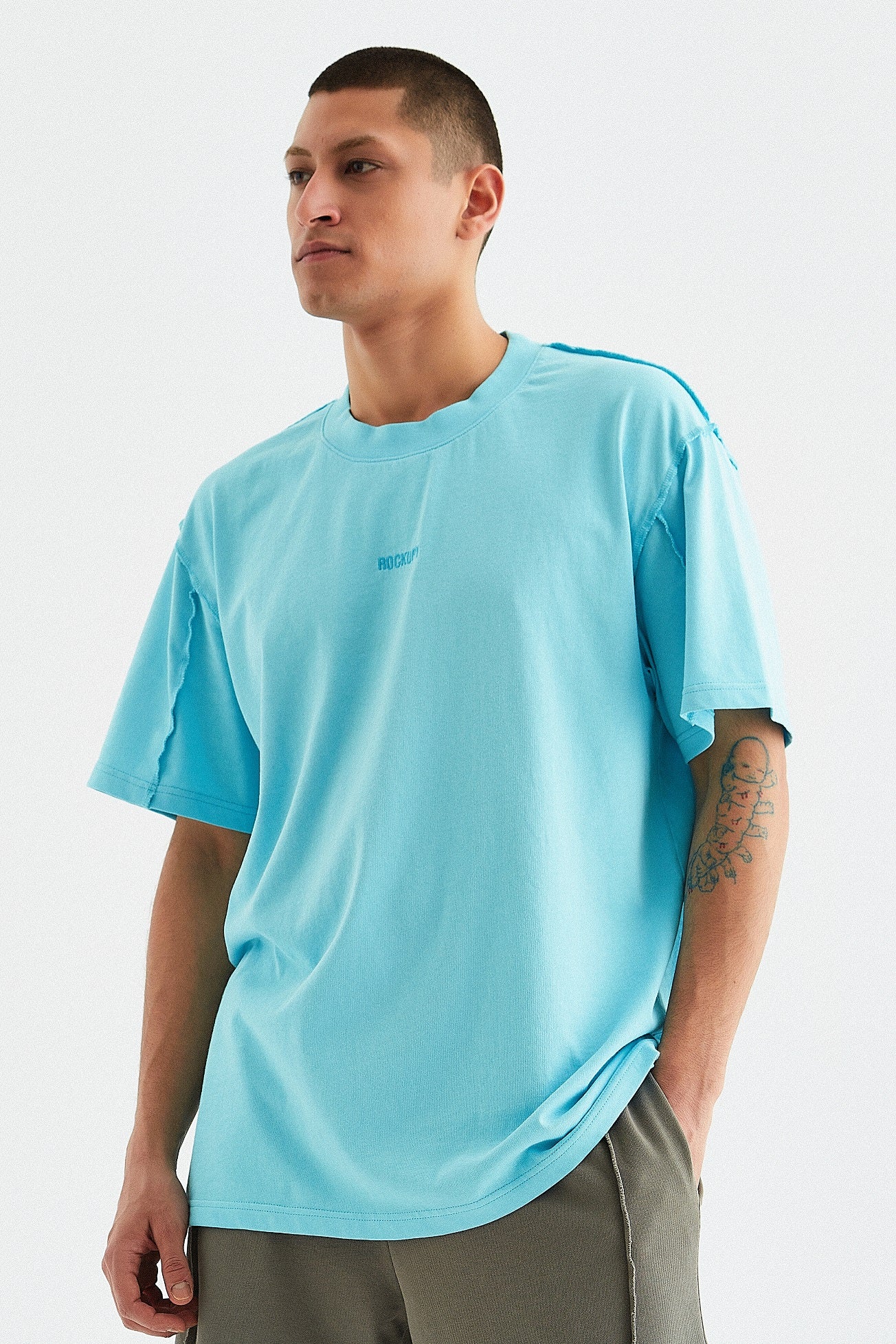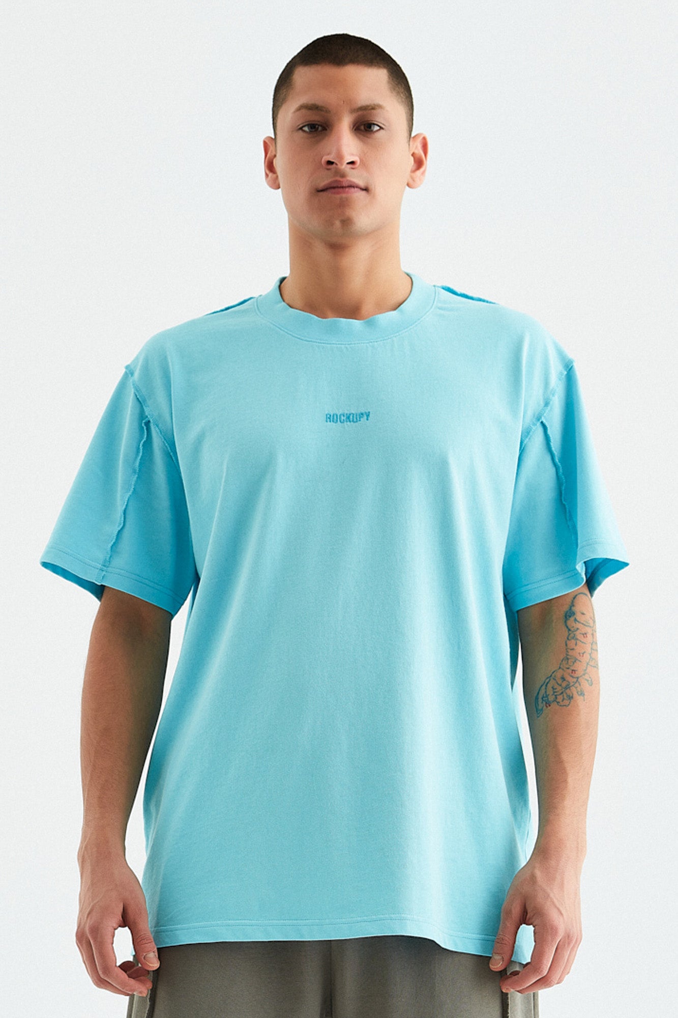 - Gri, sarı ve mavi renk opsiyonlarında, giysinin ön tarafında boyun dikişinin 6 cm altına yerleştirilmiş orijinal "Rockupy" logosu işlemeli, %100 pamuklu bisiklet yaka, rahat ve şık erkek tişörtü. Giysilere parça boya ve özel yıkama tekniği uygulanmıştır. Kumaş pis dikiş tekniği ile dikilmiştir.