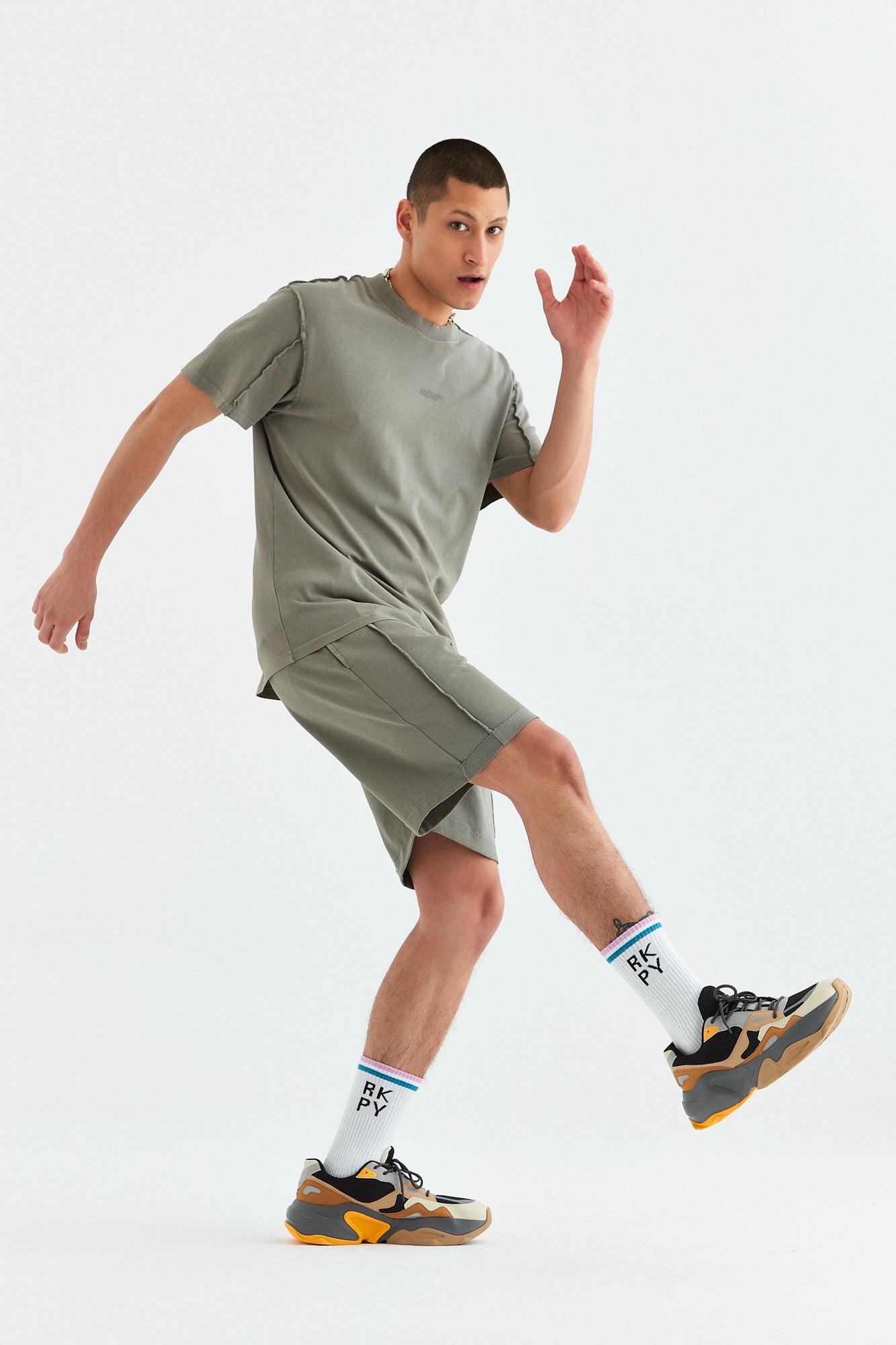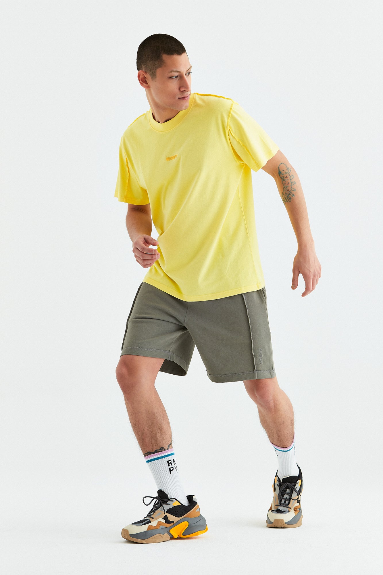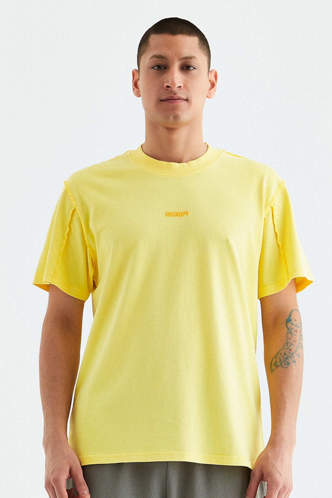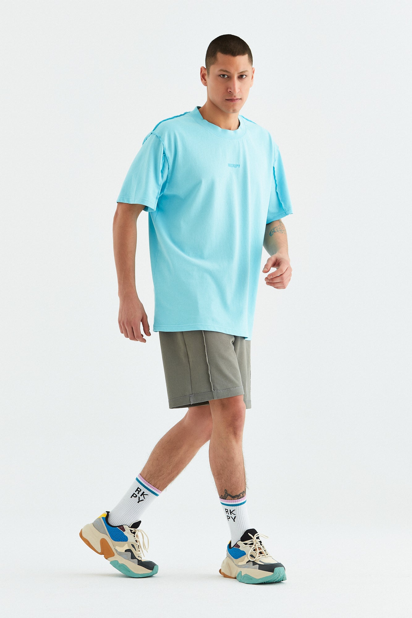 - Gri, sarı ve mavi renk opsiyonlarında, giysinin ön tarafında boyun dikişinin 6 cm altına yerleştirilmiş orijinal "Rockupy" logosu işlemeli, %100 pamuklu bisiklet yaka, rahat ve şık erkek tişörtü. Giysilere parça boya ve özel yıkama tekniği uygulanmıştır. Kumaş pis dikiş tekniği ile dikilmiştir.