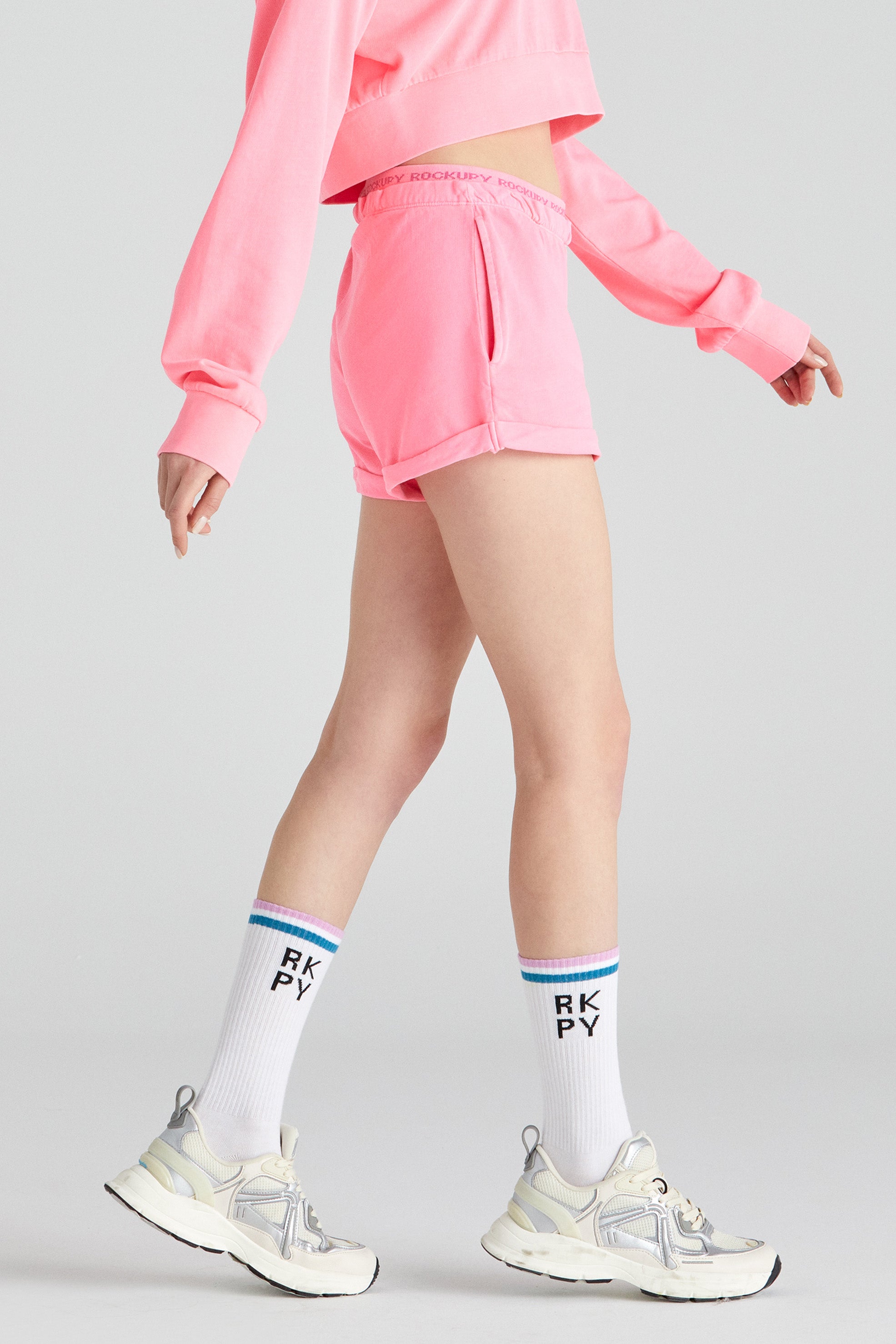 Neon pembe, neon açık yeşil ve yeşil renk gruplarında, çift katlı beli ve belinin iç katmanında Orijinal “Rockupy” logolu örgü şeritli, rahat ve şık %100 pamuklu kadın şortu, rahatlık arayışındaki dolabınızın vazgeçilmez parçası oluyor.