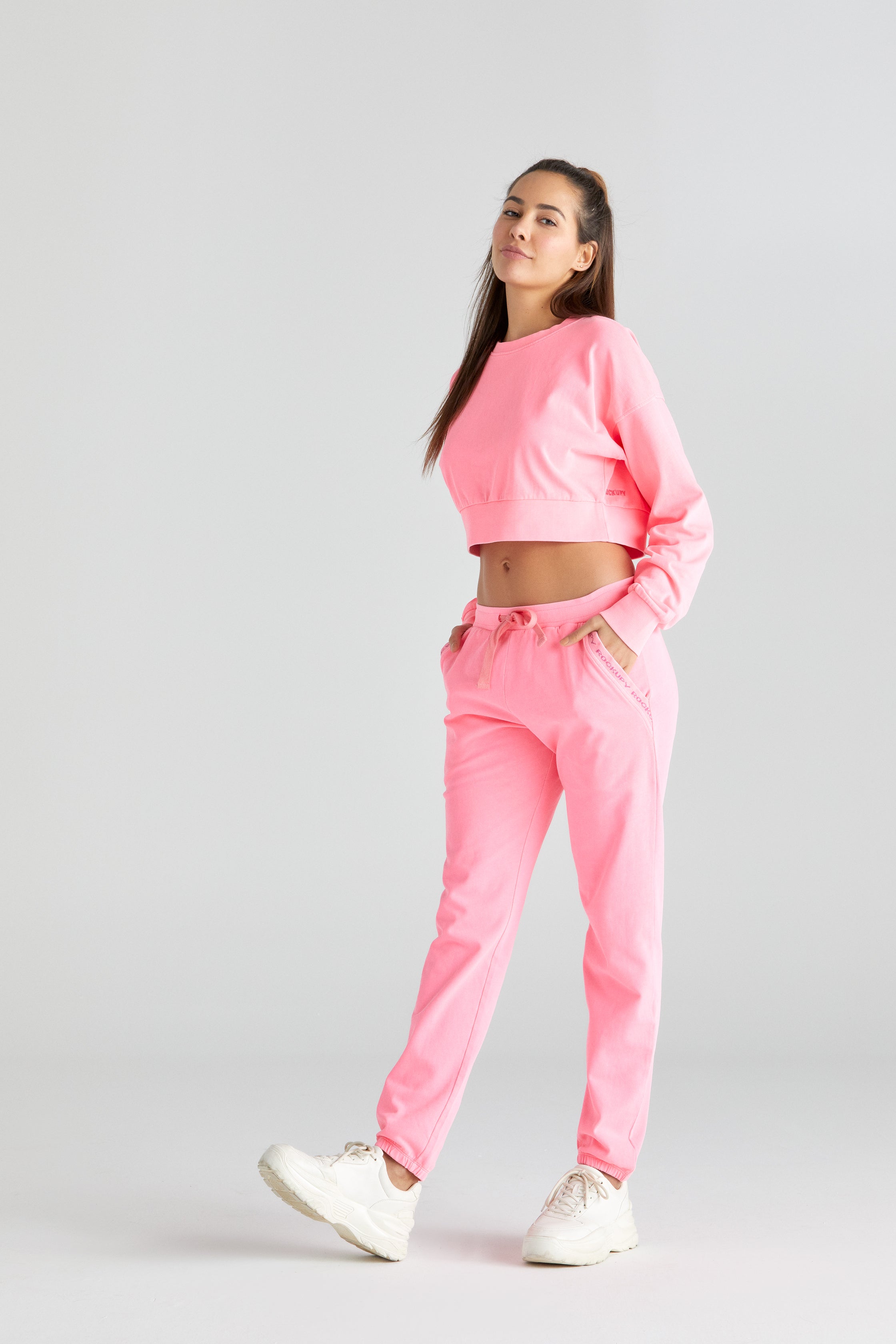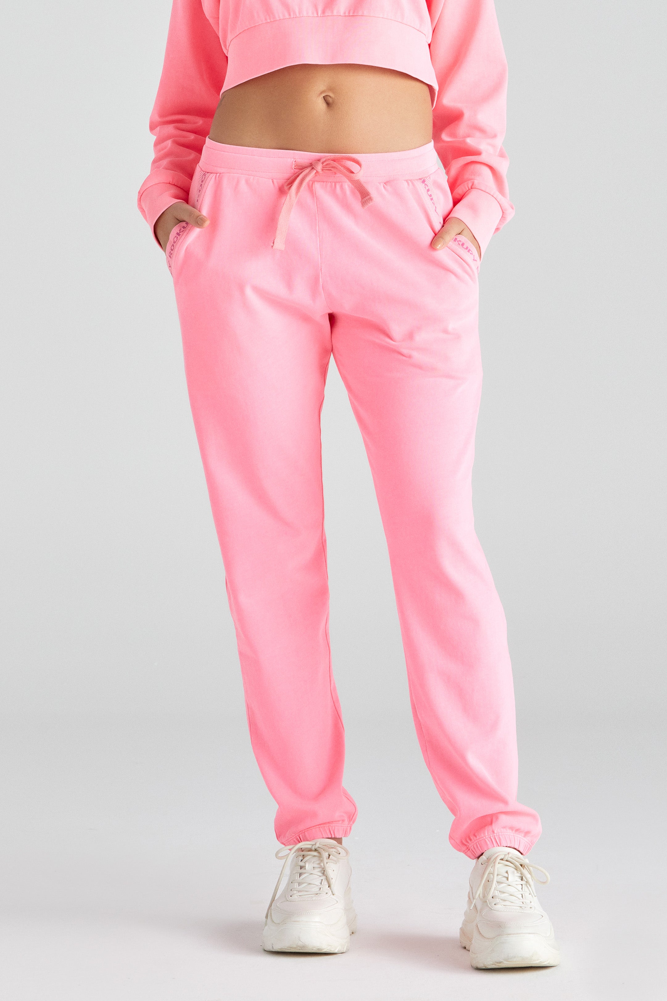 Ceplerin kenarlarında Orjinal Rockupy logolu örgü şeritli ve beli lastikli bağcıklı, neon pembe renkte, rahat ve şık %100 pamuklu kadın eşofman altı, rahatlık arayışındaki dolabınızın vazgeçilmez parçası oluyor.