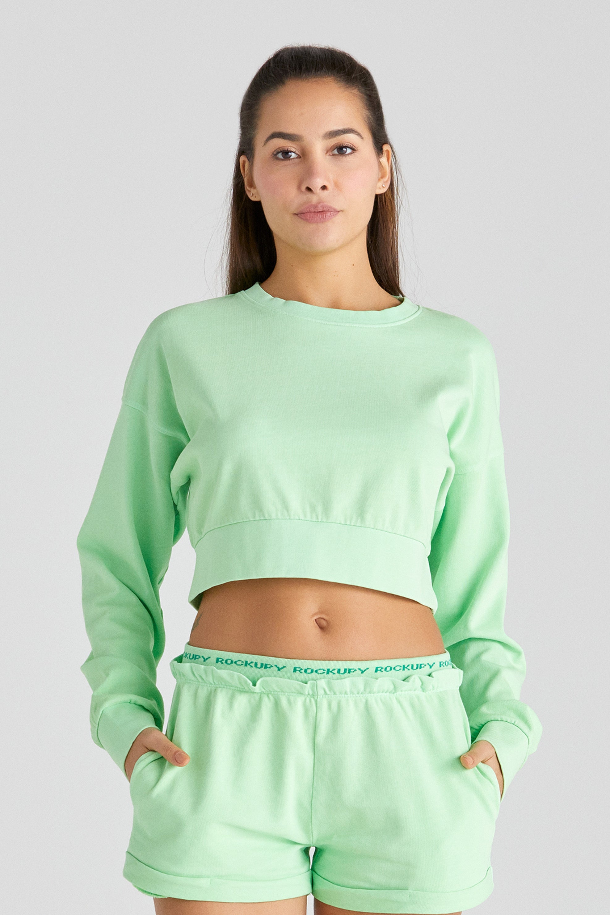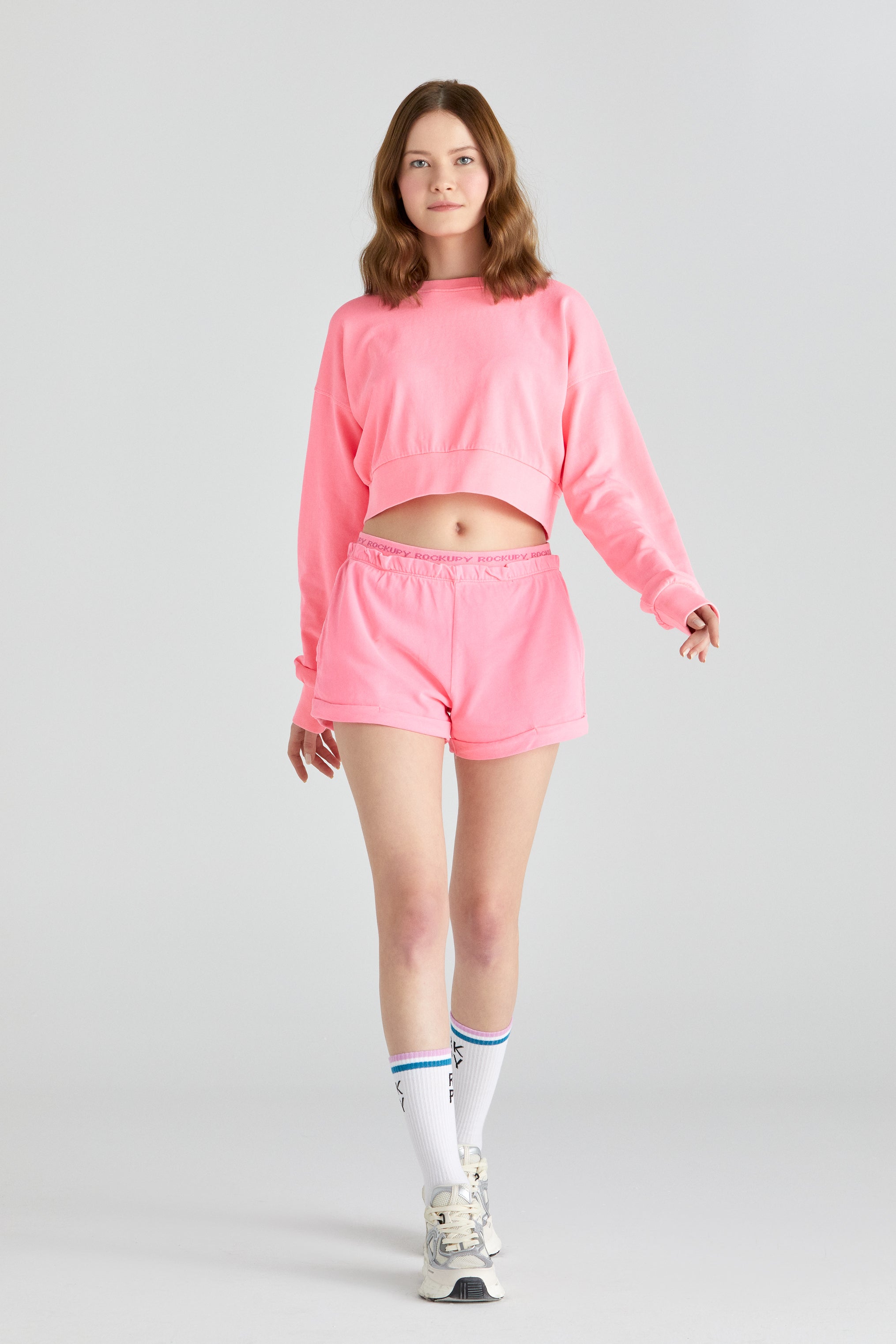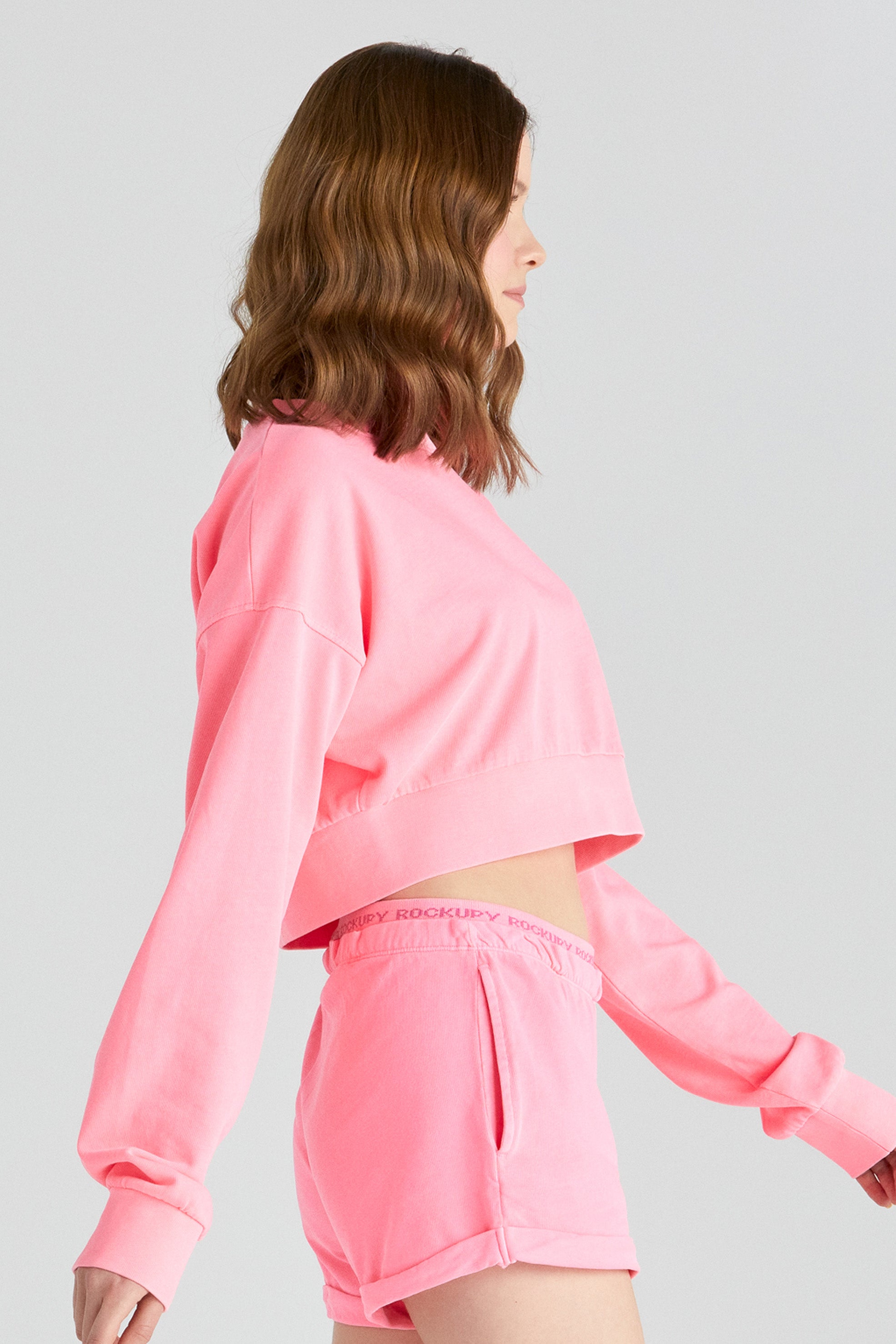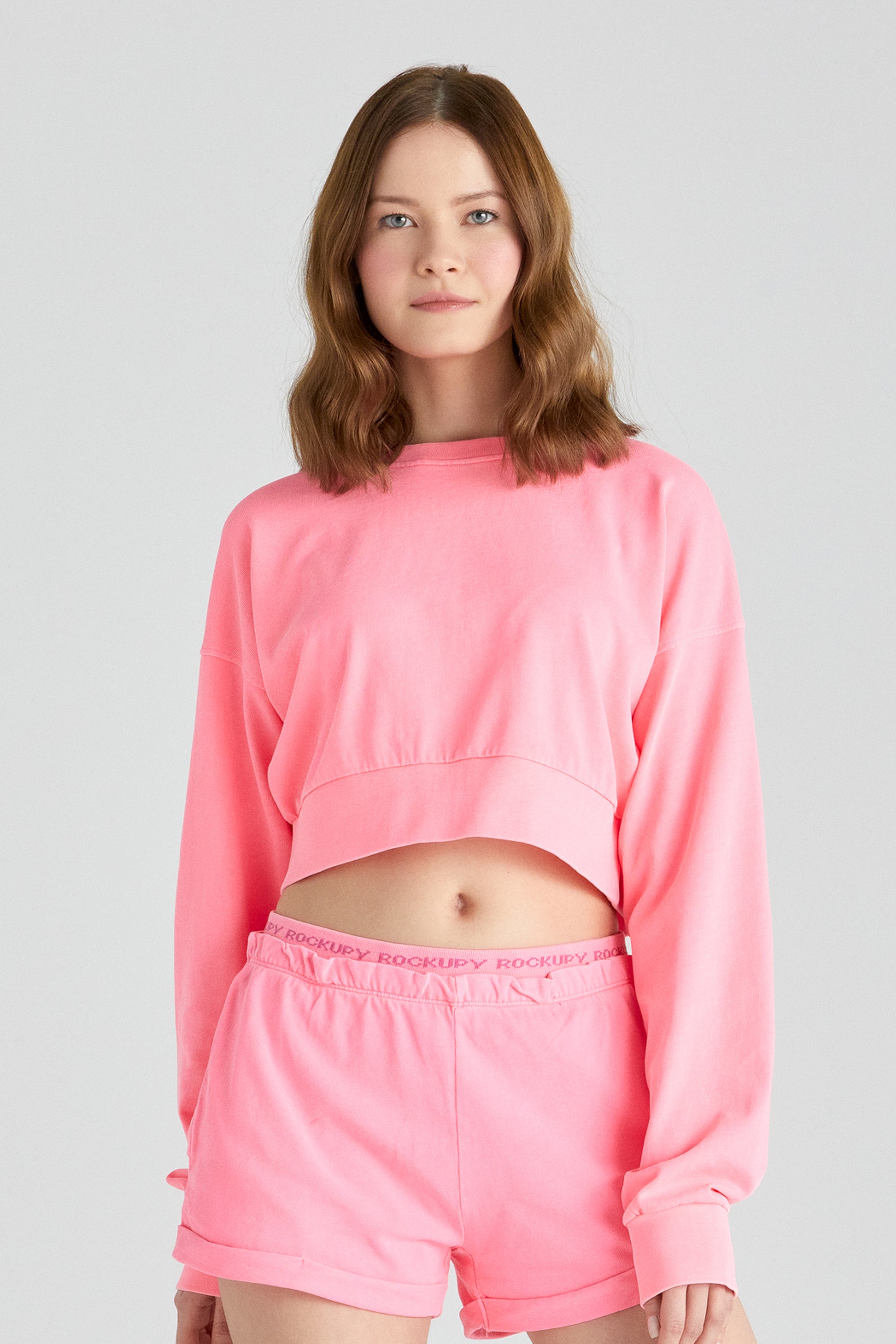 Neon pembesi ve neon açık yeşil renklerinde, giysinin arka sol alt tarafında Orijinal “Rockupy” işlemeli, %100 pamuklu, rahat ve şık kadın uzun kollu crop sweat. Bu modaya uygun ve şık crop sweat, hoş bir şekilde yumuşak ve yüksek bir kaliteye sahiptir.
