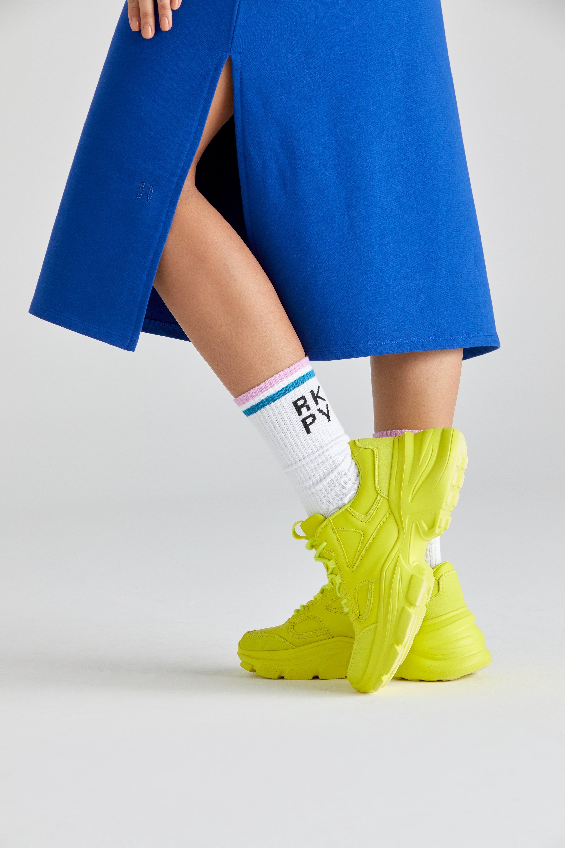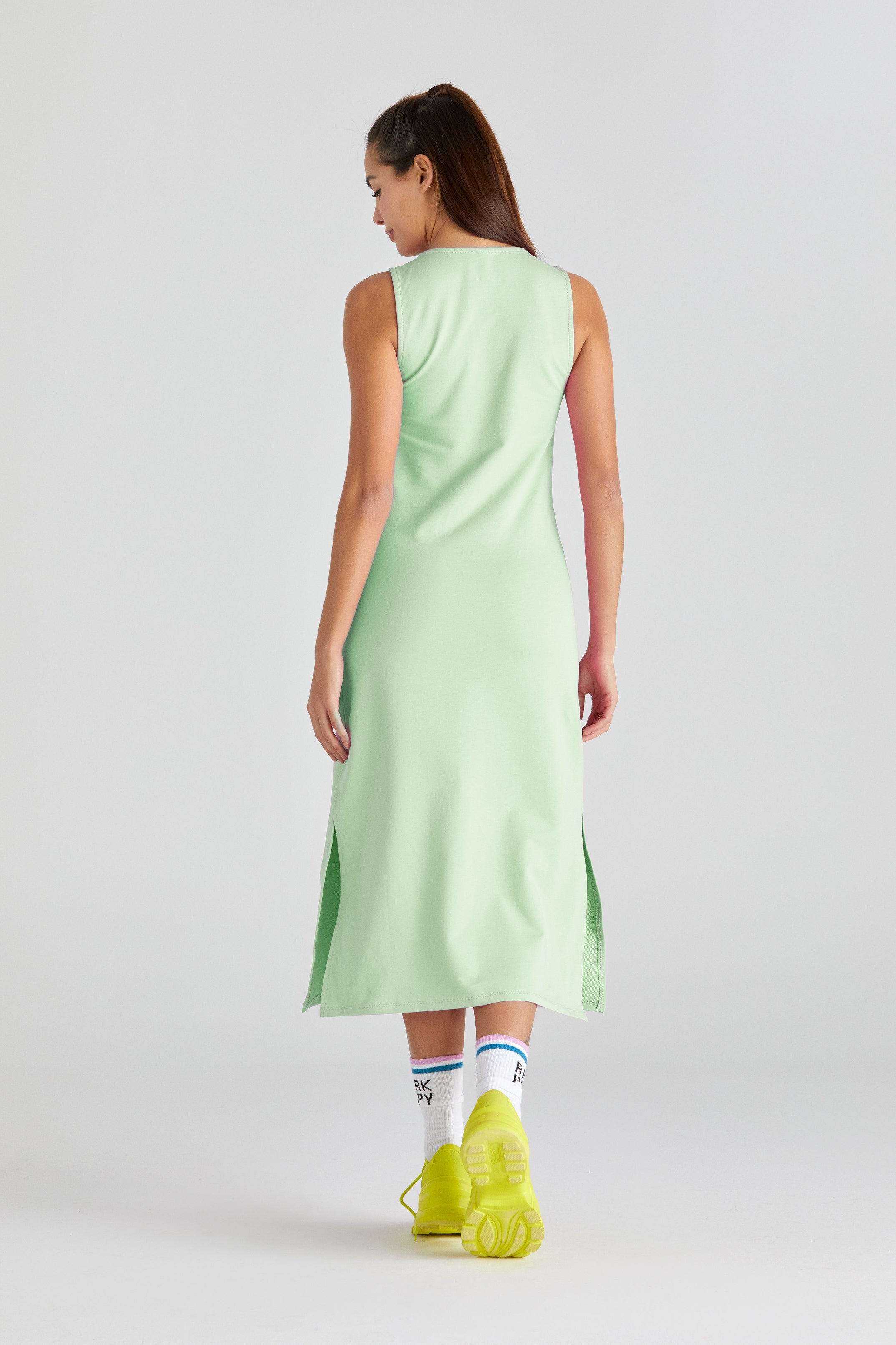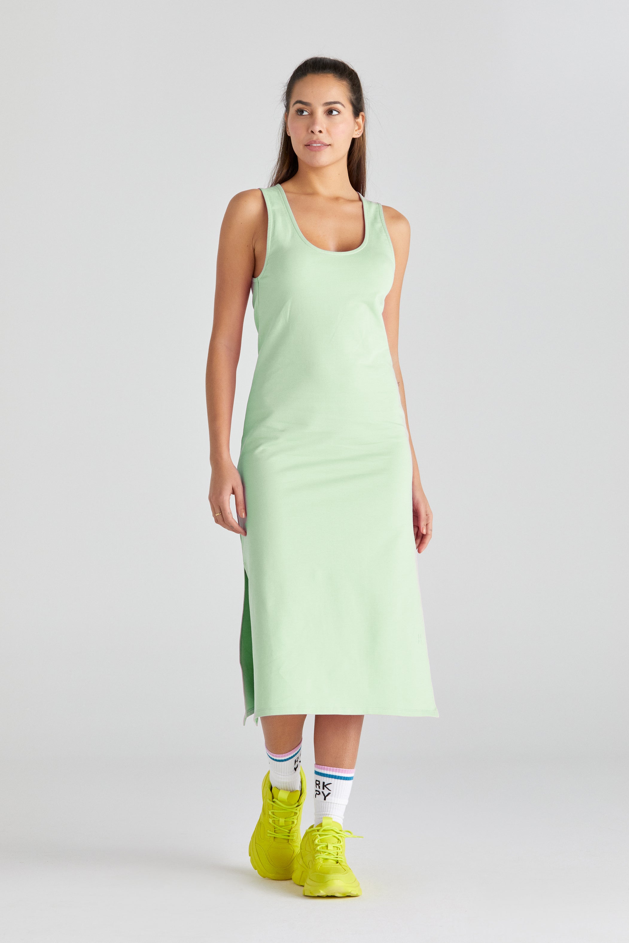 Rahat ve şık, açık yeşil/pembe/lacivert renk varyasyonlarıyla kadın elbisesi %95 Pamuk %5 Elastandır, solda orijinal “Rockupy” logosu işlemesine sahip elbise, 123cm boy uzunluğu ile rahat bir gardırobun olmazsa olmazıdır.
