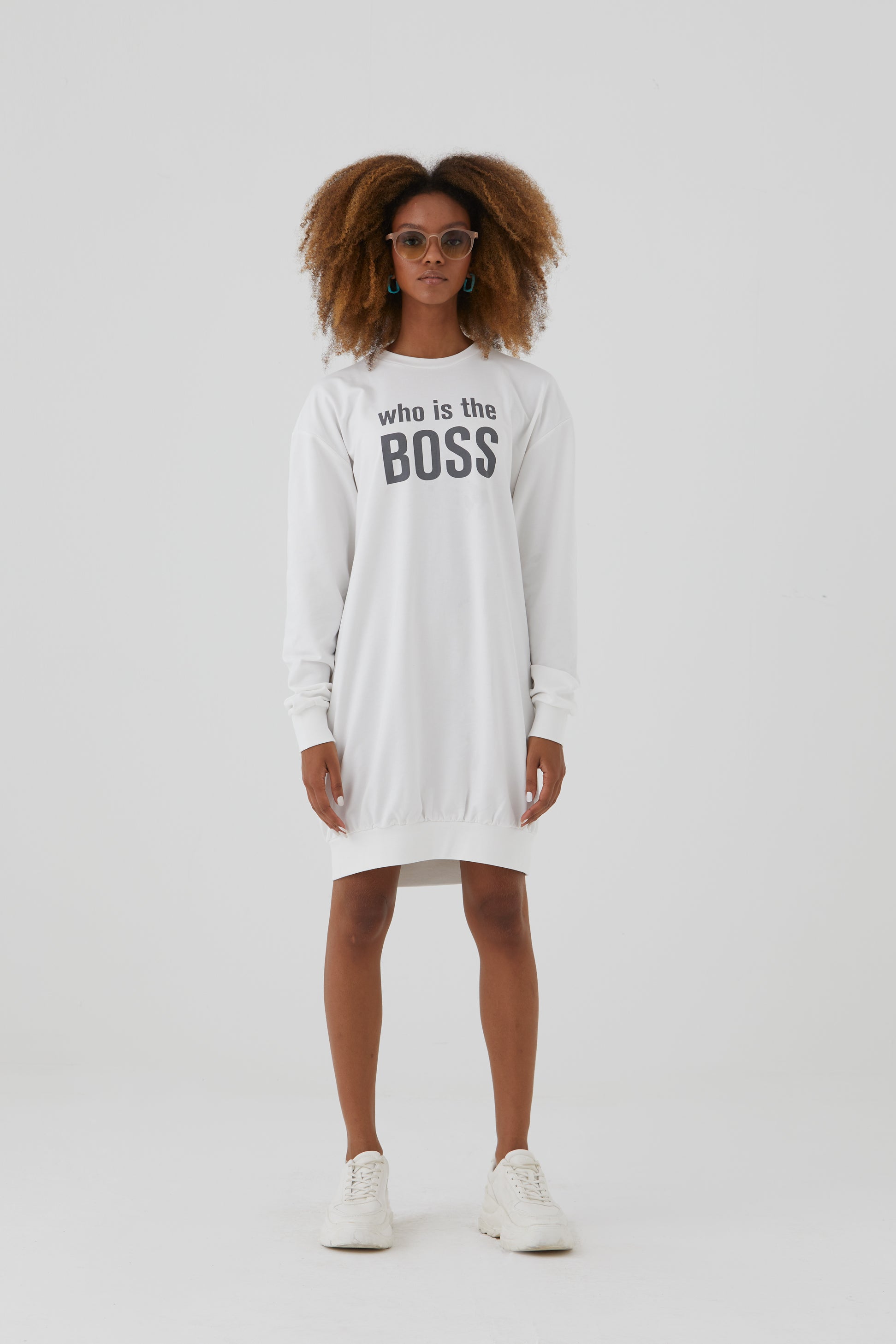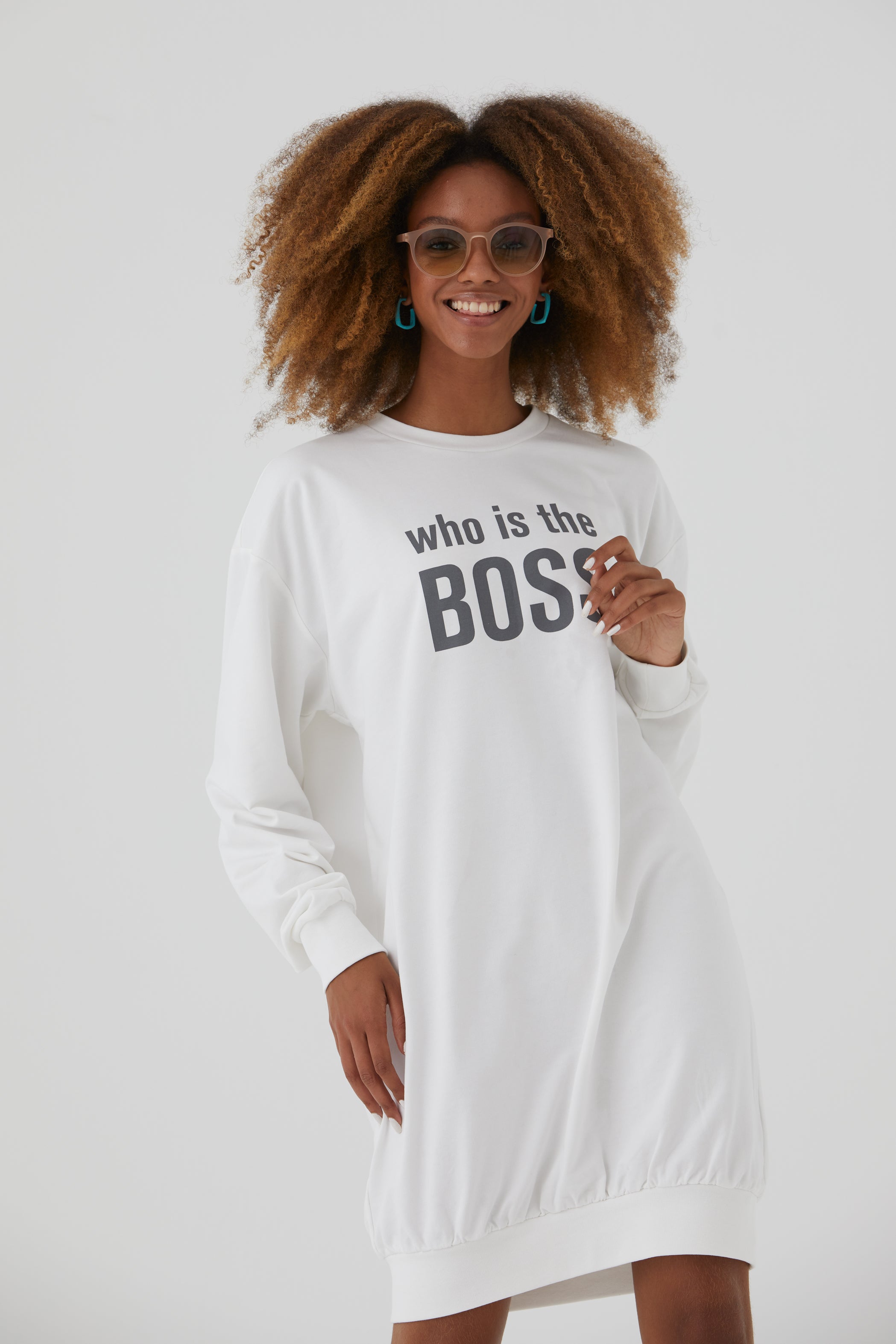 "BOSS" Baskısı: Güçlü ve cesur bir mesaj veren "BOSS" yazısı, tarzınıza özgüven katar. Her ortamda kendinizi ifade etmenin şık bir yolu.